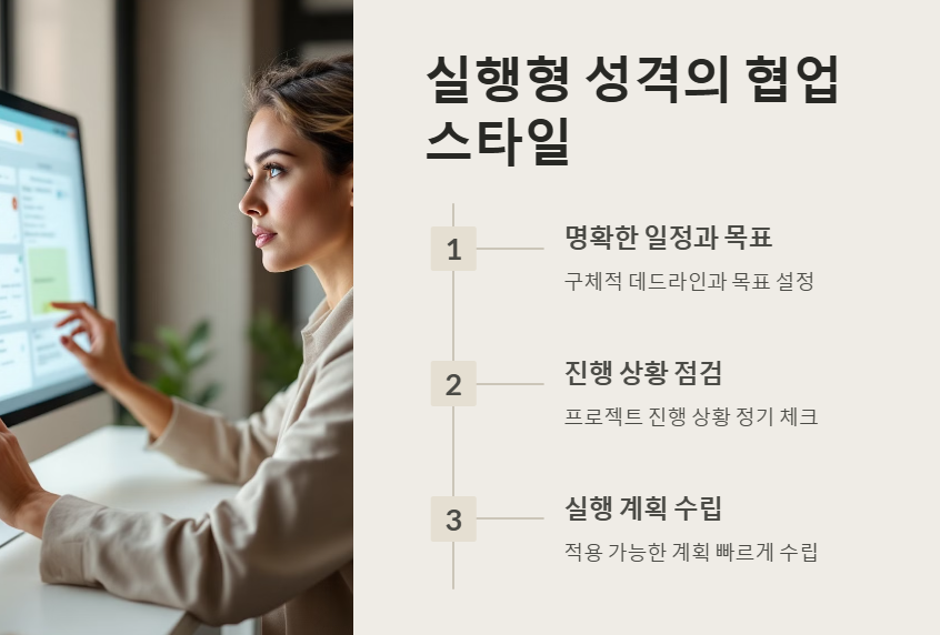 - 📅 명확한 일정과 목표 제공: 실행형 성격의 팀원은 구체적인 데드라인과 목표가 있을 때 효율적입니다.