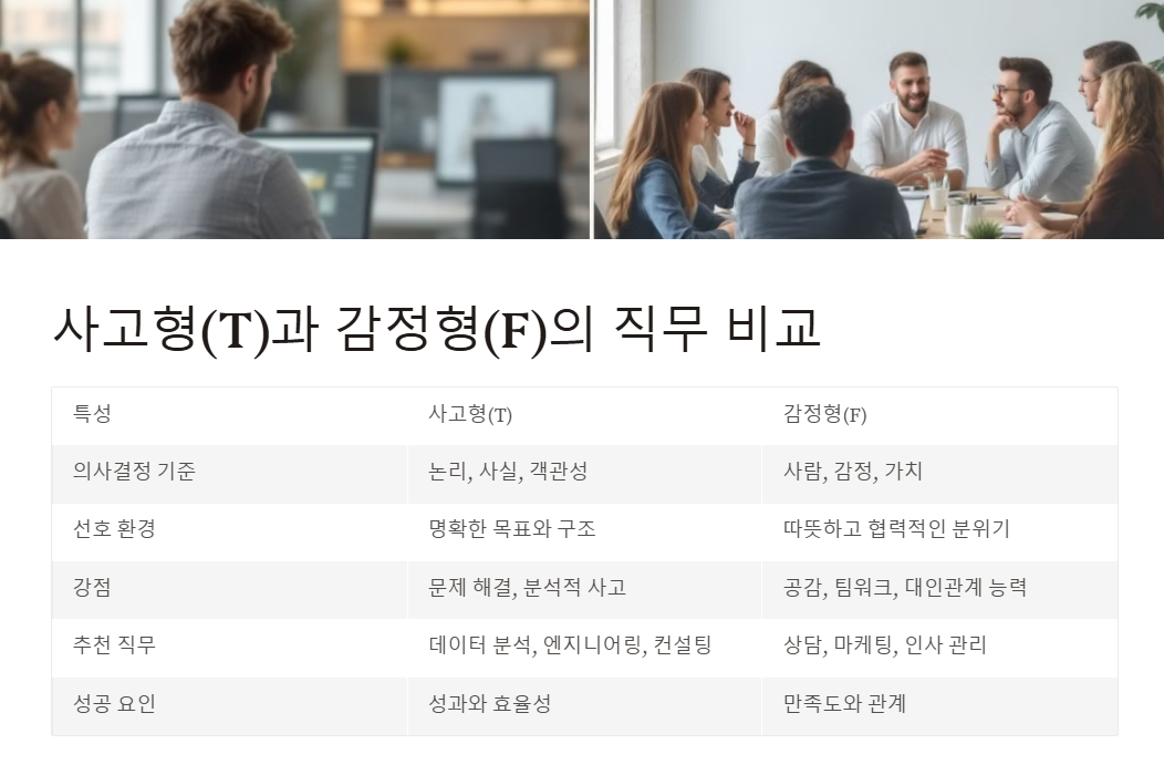 📊 사고형(T)과 감정형(F)의 직무 비교